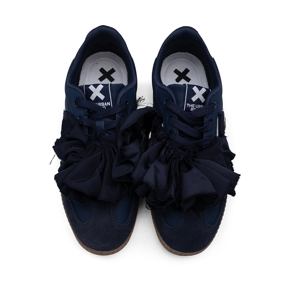 Sapatilhas exclusivas personalizadas pela estilista Constança Entrudo, usadas no ModaLisboa. Uma peça de edição limitada que celebra a união entre moda e arte.