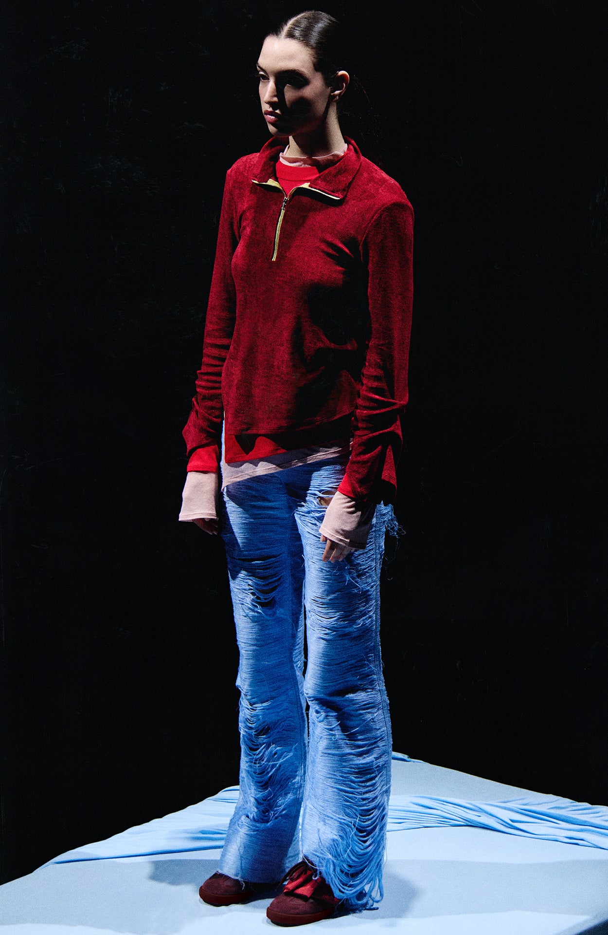 Sapatilhas exclusivas personalizadas pela estilista Constança Entrudo, usadas no ModaLisboa. Uma peça de edição limitada que celebra a união entre moda e arte.